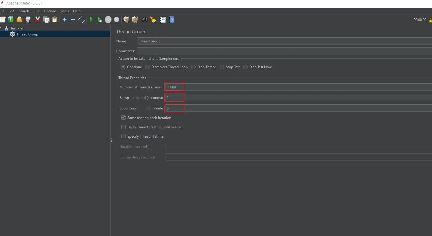 예시 → Number of Threads = 100,Ramp-up = 10초, Loop Count = 5