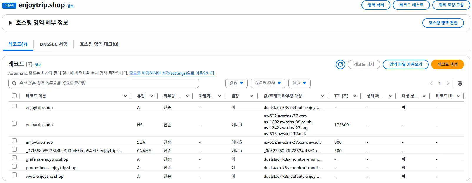 해당 LoadBalancer의 DNS 값을 Route53에 등록한 도메인에 레코드에 추가하면 됩니다.