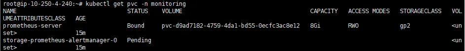 권한이 부여가 완료된 상태에서 아래와같이 server는 bound 되었지만 alertmanager은 pending 상태