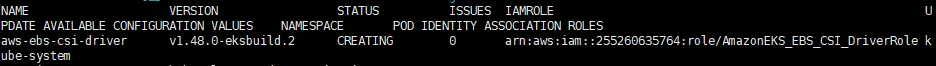 eksctl create addon --name aws-ebs-csi-driver --cluster k8s-cluster --service-account-role-arn arn:aws:iam::255260635764:role/AmazonEKS_EBS_CSI_DriverRole --force
